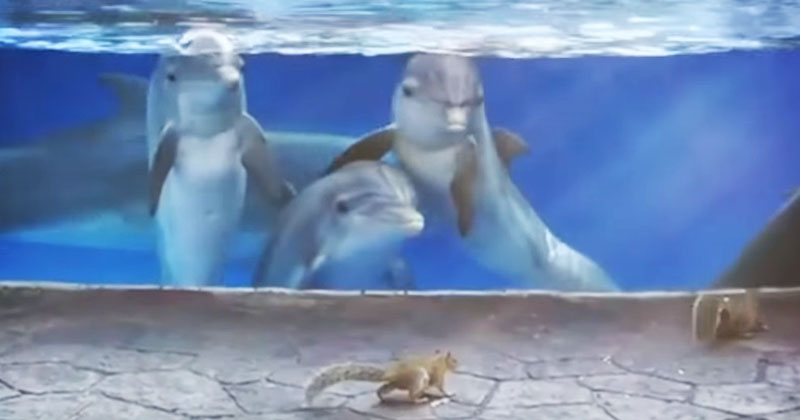 Казалось бы — где дельфины, а где белки. Разве могут эти два совершенно разных животных встретиться? Конечно, возможно, если события происходят в океанариуме.