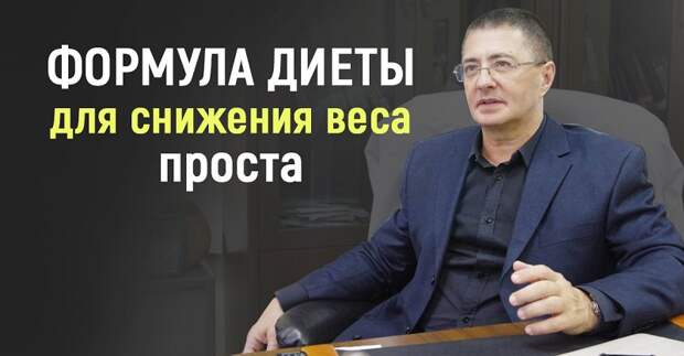 Доктор Мясников заверяет, что ускорить обмен веществ мы можем с легкостью сами. Формула диеты очень проста: достаточно съедать меньше калорий, чем тратить: «Начиная диетические мероприятия, ставьте перед собой реалистичные задачи. Не надо ставить целью сразу сбросить 20 кг. Для начала попробуйте сбросить 5–10 % веса. Получится 15 % — это вообще отличный результат! Я только злюсь, когда слышу про какую-нибудь “кремлевскую” диету. Это просто эксплуатация модного названия».